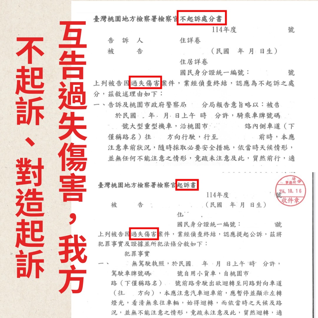 首頁 > 成功案例 > 車禍互告過失傷害怎麼辦?我方不起訴、對造起訴 | 桃園律師 | 桃園車禍訴訟律師 | 桃園刑事律師