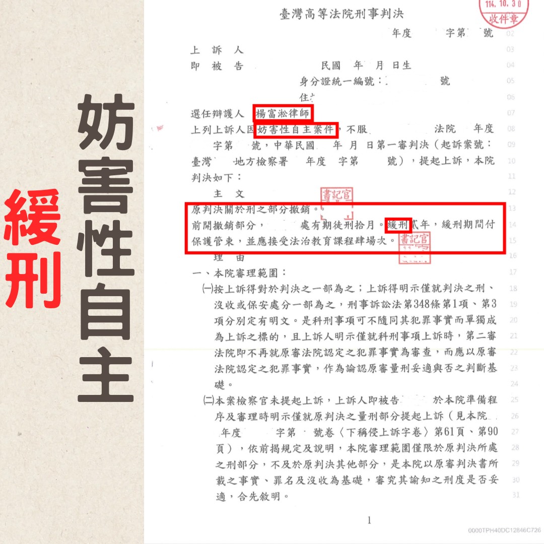 當事人因此 受緩刑宣告 免於入監執行,並能在社會生活中透過教育與調整完成修復。